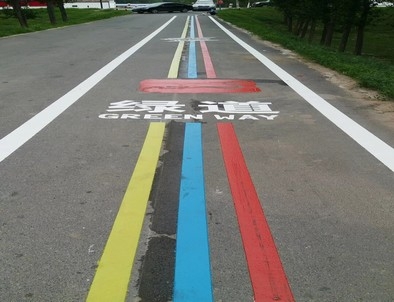 彩色路面标线施工 - 道路划线系列 - 郑州亿路通太阳能发光交通标牌厂15503714586